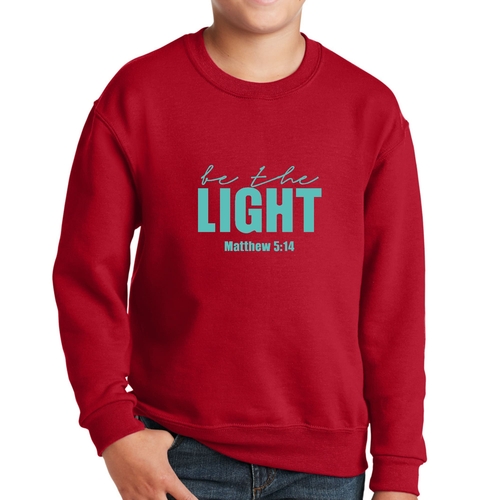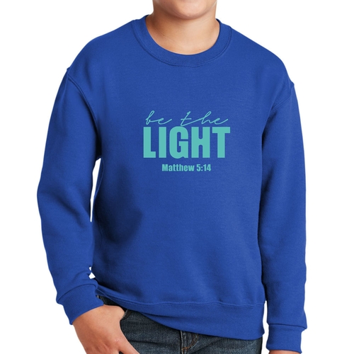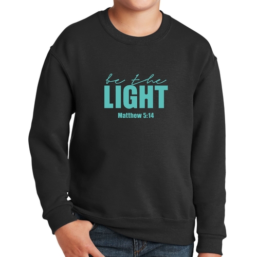 Featuring the inspirational 'Be the Light' print, this sweatshirt is not just a piece of clothing; it's a statement. The graphic design is professionally printed in the USA, ensuring vibrant colors and a long-lasting finish. The message encourages positivity and serves as a reminder to shine bright in the world. Your child will love wearing this sweatshirt, and it makes for a great gift for birthdays or special occasions.