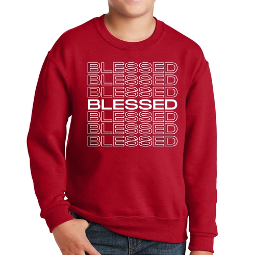 Introducing the Youth Graphic Sweatshirt Blessed Stacked Print, a stylish and comfortable addition to any young person's wardrobe. This sweatshirt is designed with both durability and comfort in mind, making it perfect for everyday wear. The eye-catching Blessed Stacked Print adds a trendy touch that kids will love, while the soft fabric ensures they stay cozy throughout the day.