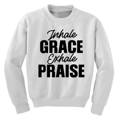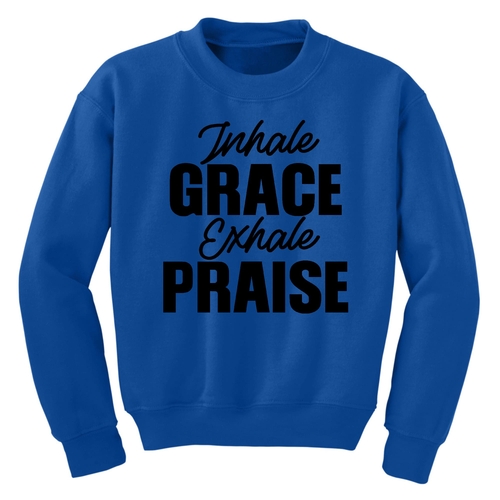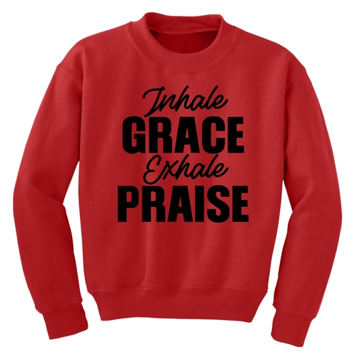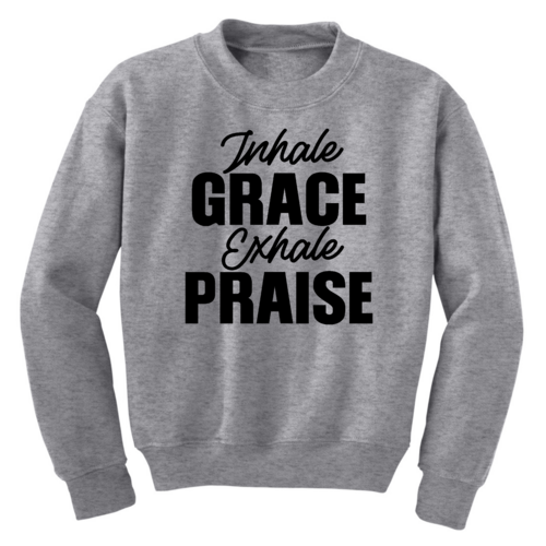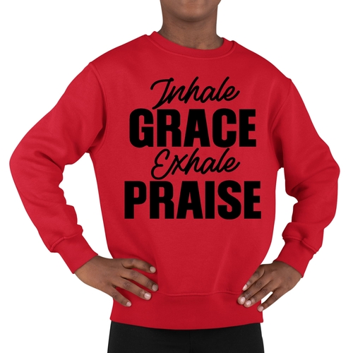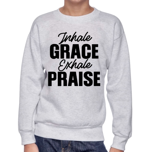 The Youth Graphic Sweatshirt is not just a piece of clothing; it’s a statement. The uplifting message 'Inhale Grace Exhale Praise' encourages positivity and mindfulness, making it a great choice for school events, casual outings, or even as a thoughtful gift. Your child will love wearing this sweatshirt, and it can easily be paired with jeans, shorts, or joggers for a complete look.