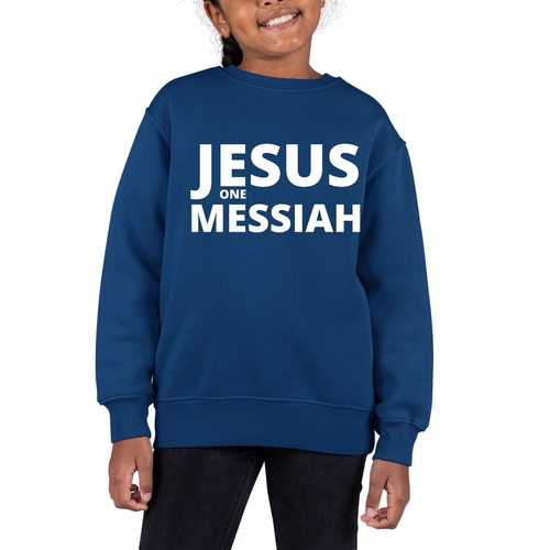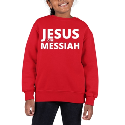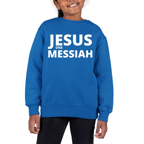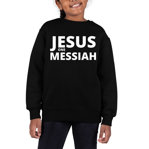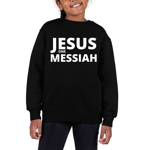 Introducing our Youth Graphic Sweatshirt featuring the inspiring message of Jesus as the one Messiah. This stylish and comfortable sweatshirt is designed specifically for girls, making it a perfect addition to any young girl's wardrobe. Crafted from a durable 50/50 cotton and polyester blend, this sweatshirt is not only soft to the touch but also built to withstand the rigors of daily wear.