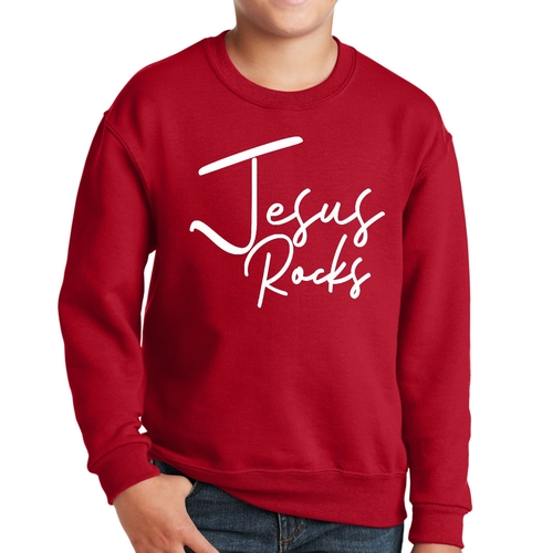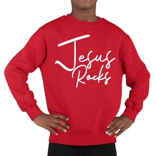 In summary, the Youth Graphic Sweatshirt featuring the Jesus Rocks print is a fantastic addition to any young believer's wardrobe. With its durable construction, comfortable fit, and stylish design, it’s perfect for everyday wear. Make a statement of faith and inspire others with this unique sweatshirt that combines comfort, style, and Christian inspiration.