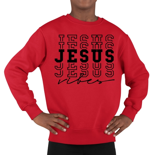 With its ribbed collar, cuffs, and waistband, the Youth Graphic Sweatshirt offers a snug fit that keeps warmth in while providing a stylish look. The eye-catching Jesus Vibes graphic adds a unique touch that kids will love, making it a great addition to their wardrobe. This sweatshirt is perfect for layering during cooler months or wearing on its own during milder weather.