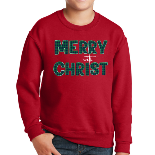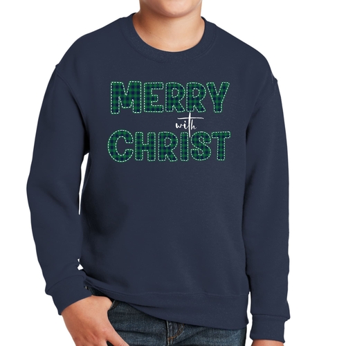 The Youth Graphic Sweatshirt Merry with Christ features a festive design that captures the spirit of Christmas. It is perfect for holiday gatherings, family photos, or simply spreading cheer during the holiday season. Your child will love wearing this sweatshirt as they celebrate with friends and family, making it a memorable part of their holiday traditions.