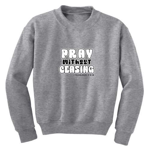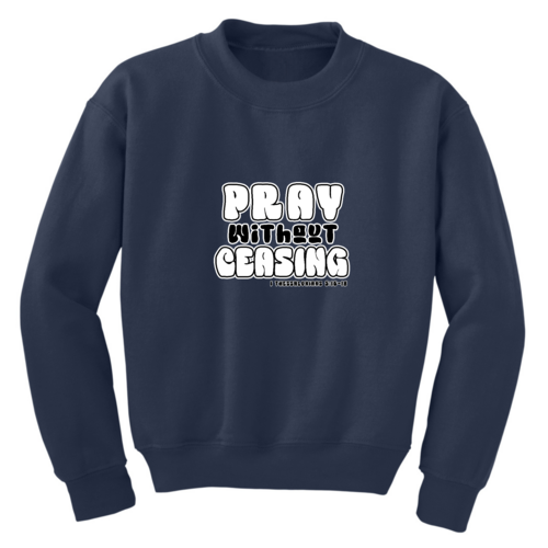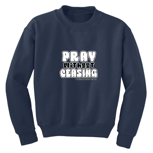 Introducing the Youth Graphic Sweatshirt, a perfect blend of comfort and inspiration for young boys. This stylish crewneck sweatshirt features the uplifting message 'Pray Without Ceasing', making it an ideal choice for those who appreciate motivational apparel. Crafted from a durable 50/50 cotton and polyester blend, this sweatshirt is designed to withstand the rigors of daily wear while providing a soft and cozy feel.