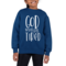 Introducing the Youth Graphic Sweatshirt 'Say It Soul - God Never Gets Tired', a perfect blend of style, comfort, and durability. This sweatshirt is designed for young girls who want to express their faith while staying cozy and fashionable. Made from a high-quality 50/50 cotton and polyester blend, this sweatshirt ensures a soft feel against the skin while providing the durability needed for everyday wear.
