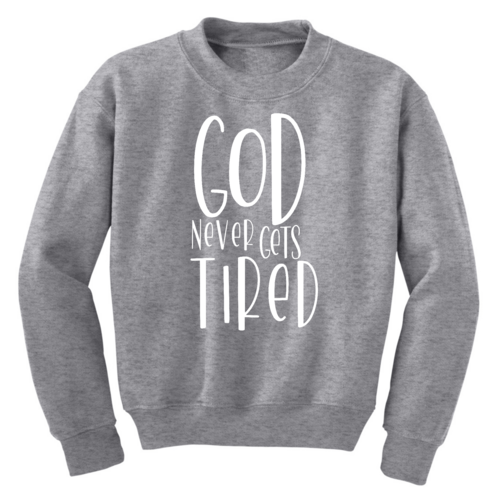 In summary, the Say It Soul - God Never Gets Tired Youth Graphic Sweatshirt is an excellent choice for young individuals who value comfort, style, and quality. With its durable construction, easy care instructions, and meaningful design, it’s a must-have for any wardrobe. Whether for casual outings or cozy days at home, this sweatshirt is sure to become a favorite.