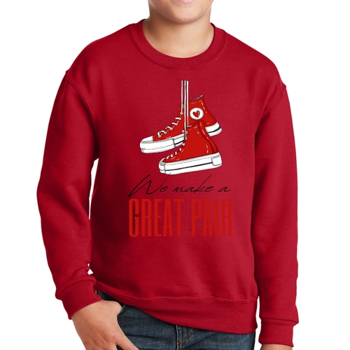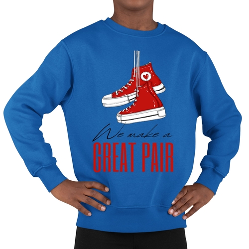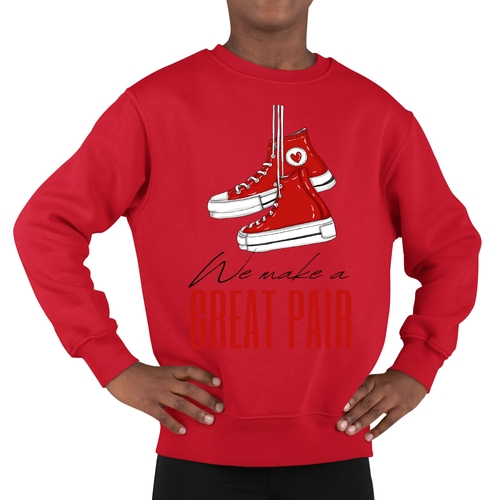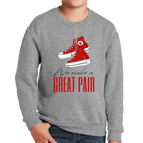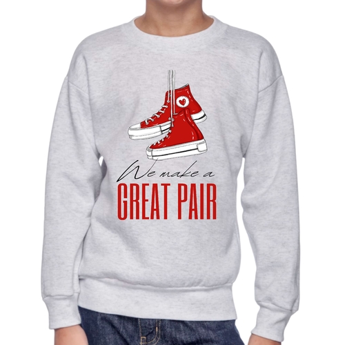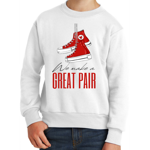The graphic design, 'Say it Soul, we Make a Great Pair,' adds a fun and trendy touch to this classic sweatshirt. It’s perfect for boys who want to express their personality through their clothing. Whether they are heading to school, hanging out with friends, or enjoying a family outing, this sweatshirt is sure to be a favorite.