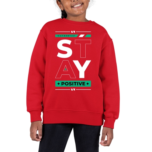 The Youth Graphic Sweatshirt Stay Positive is perfect for various occasions. Whether your child is heading to school, attending a birthday party, or simply lounging at home, this sweatshirt provides the ideal combination of comfort and style. Pair it with jeans, leggings, or shorts for a casual yet fashionable look that your child will love.