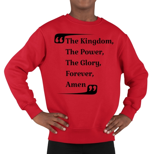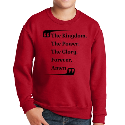 Whether it's a casual day at school, a family outing, or a cozy night in, this sweatshirt is the perfect choice. The graphic design featuring 'the Kingdom the Power the Glory Forever Amen' adds a meaningful touch, making it a great conversation starter. It's not just a piece of clothing; it's a way for your child to express their beliefs and values.