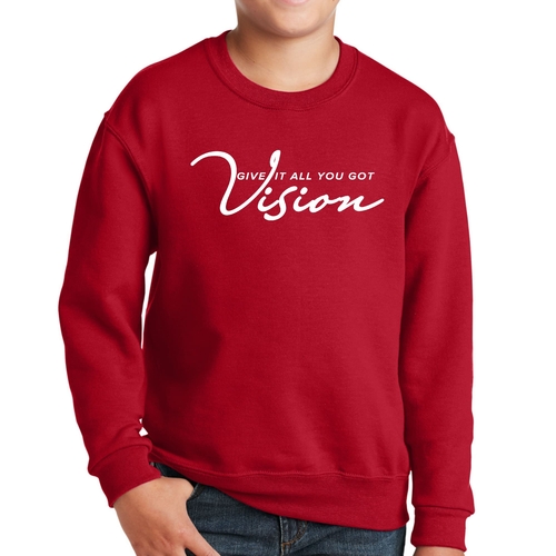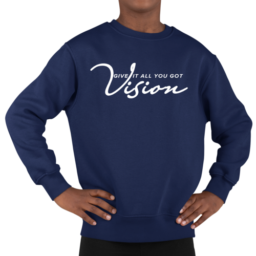 The Youth Graphic Sweatshirt Vision - Give it All you Got is the perfect addition to any young boy's wardrobe. This stylish and comfortable crewneck sweatshirt is designed to keep up with the active lifestyle of youth while providing a fashionable look. Made from a durable 50/50 cotton and polyester blend, this sweatshirt is built to last, ensuring that it can withstand the wear and tear of everyday activities.