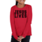 Introducing the Youth Long Sleeve Graphic T-shirt, featuring the powerful message 'Jesus Saves Lives' in a striking black and red design. This T-shirt is not just a piece of clothing; it’s a statement of faith and a source of inspiration for young believers. Made from soft, preshrunk cotton, this shirt ensures that your child stays comfortable throughout the day, whether they are at school, church, or simply hanging out with friends.