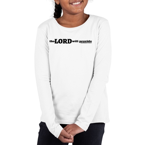 Introducing our Youth Long Sleeve Graphic T-shirt, designed for girls who appreciate both style and inspiration. This unique tee features the uplifting message 'The Lord Will Provide' inspired by Genesis 22:14, making it a perfect choice for young believers. Crafted from soft, preshrunk cotton, this shirt ensures comfort and durability, retaining its shape and softness even after multiple washes.
