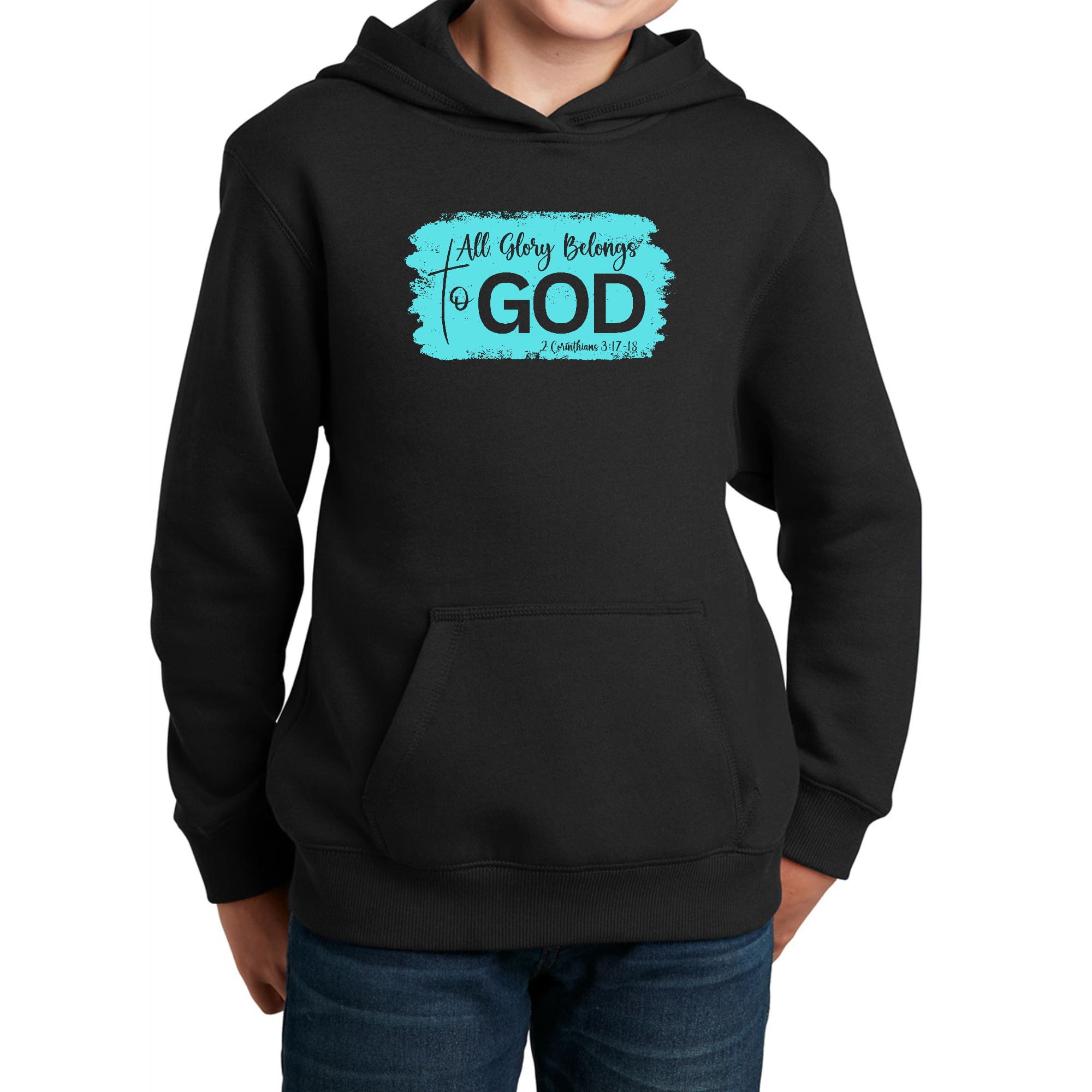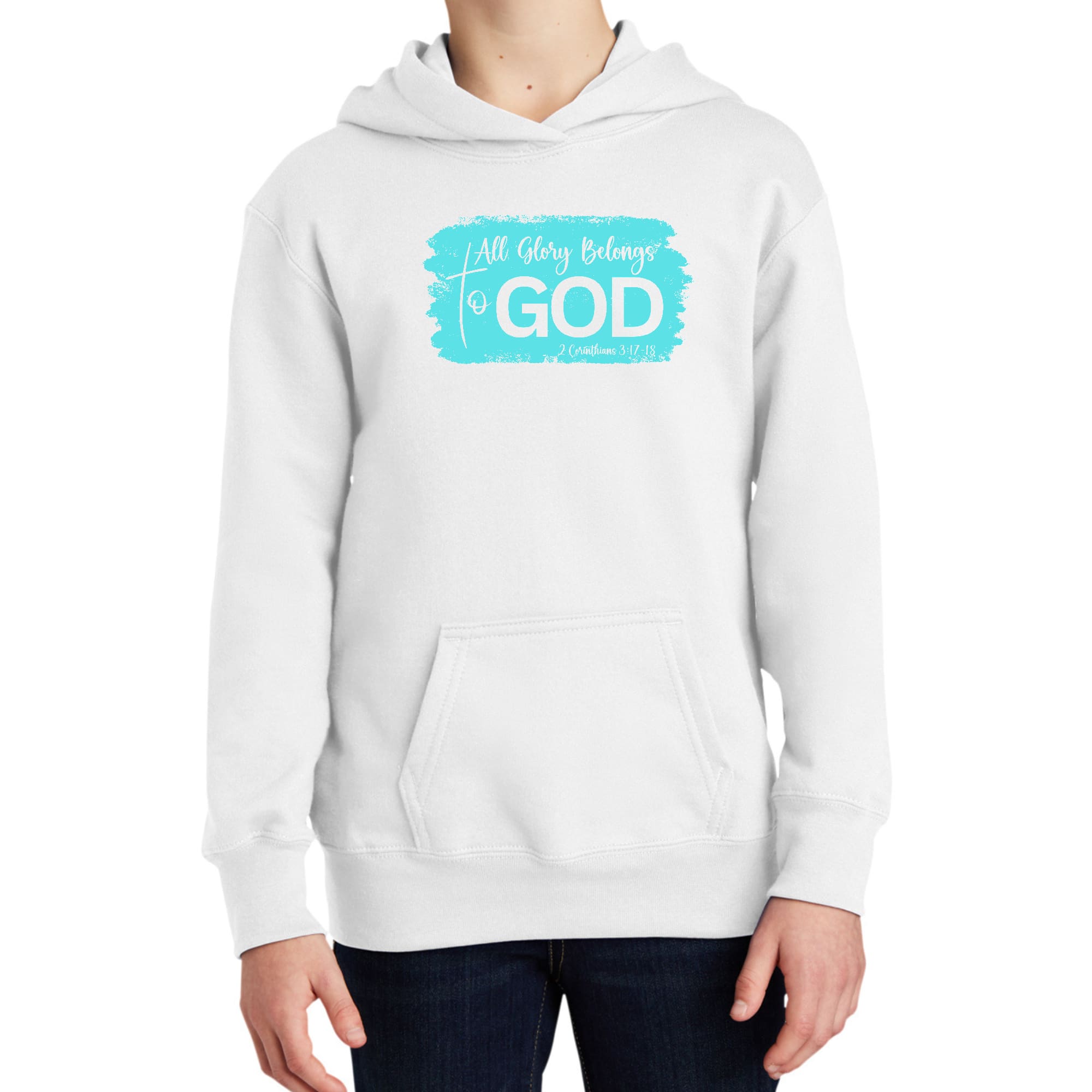 The All Glory Belongs to God graphic design is not only eye-catching but also carries a powerful message. This hoodie is perfect for youth who want to showcase their faith in a stylish way. The vibrant cyan color and bold lettering make it a standout piece in any wardrobe. Whether paired with jeans, shorts, or joggers, this hoodie is versatile enough for any casual occasion.