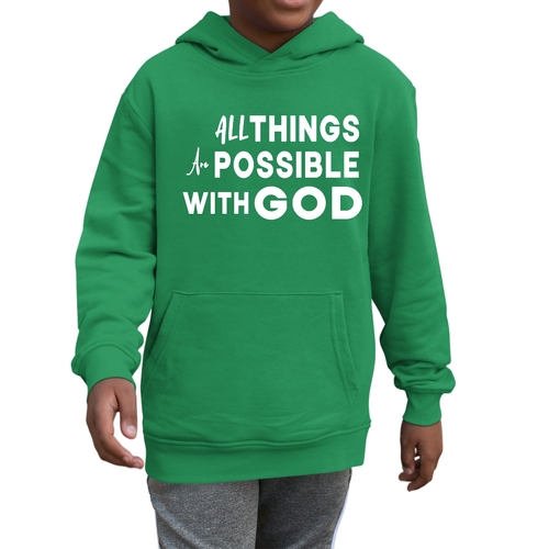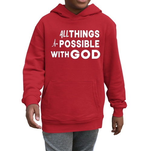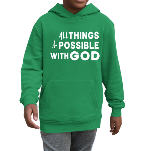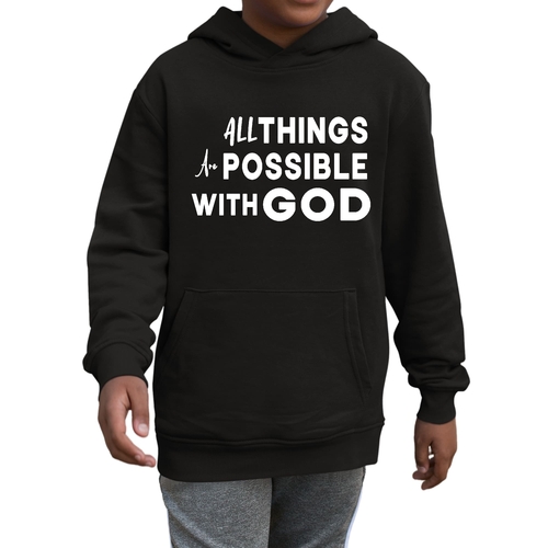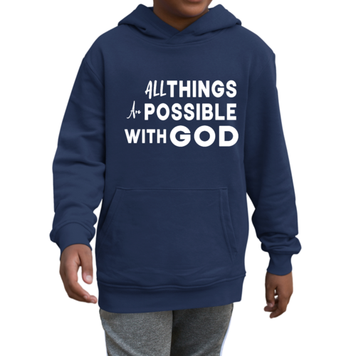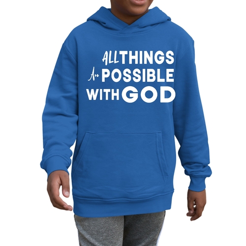 What sets this hoodie apart is its uplifting message: 'All Things are Possible with God'. This phrase serves as a daily reminder of faith and positivity, encouraging young boys to embrace their beliefs and share them with others. Whether worn at school, during playdates, or at church events, this hoodie is a wonderful way for boys to express their faith in style.