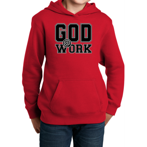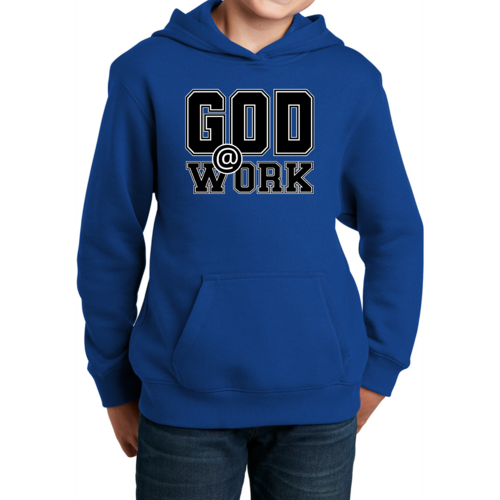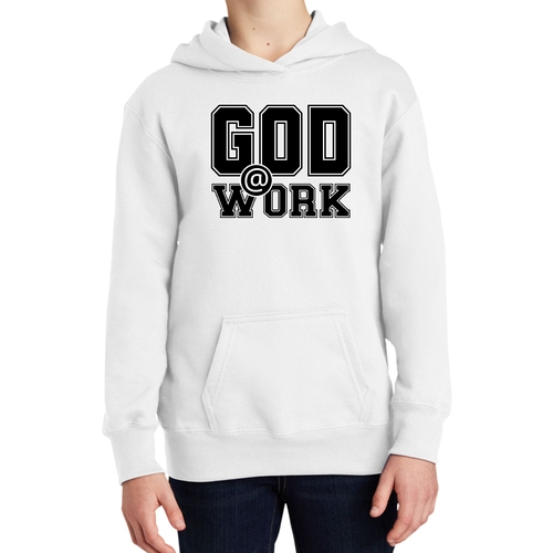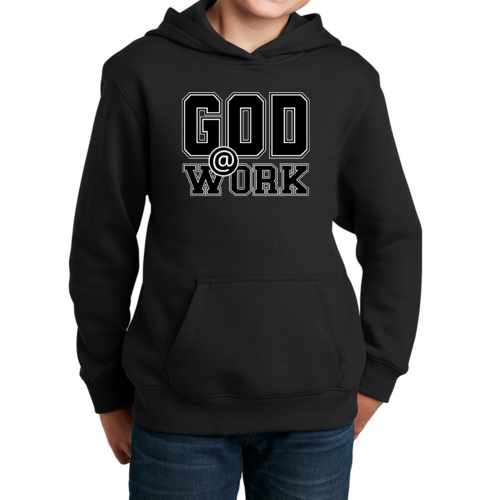In summary, the Youth Long Sleeve Hoodie with 'God @ Work' print is more than just a piece of clothing; it's a statement of faith, comfort, and style. With its durable construction, comfortable fit, and stylish design, it is sure to become a favorite among youth. Don't miss out on the opportunity to add this essential hoodie to your child's collection today!