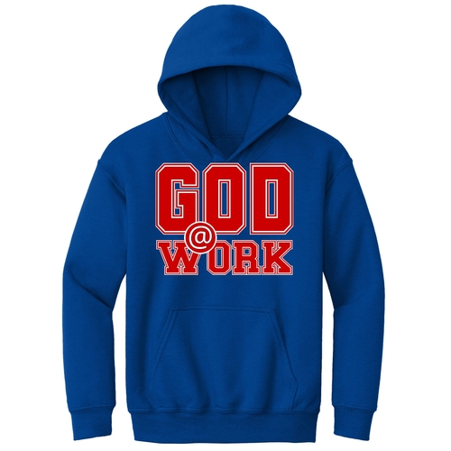 The 'God @ Work' print adds a unique touch to this hoodie, making it a great conversation starter. It’s perfect for youth who want to express their faith and values through their clothing. The bold design can be paired with jeans, shorts, or joggers, making it a versatile piece for any outfit.