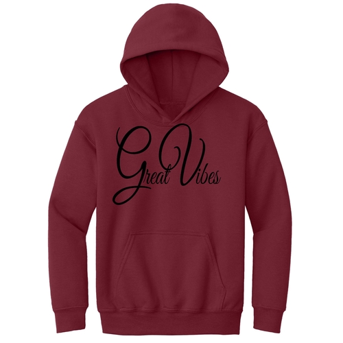 In summary, the Youth Long Sleeve Hoodie with Great Vibes Black Illustration is a must-have for any young fashion enthusiast. With its soft fabric, stylish design, and practical features, it’s sure to become a favorite in your child’s wardrobe. Don’t miss out on the chance to give your child a hoodie that they will love to wear!