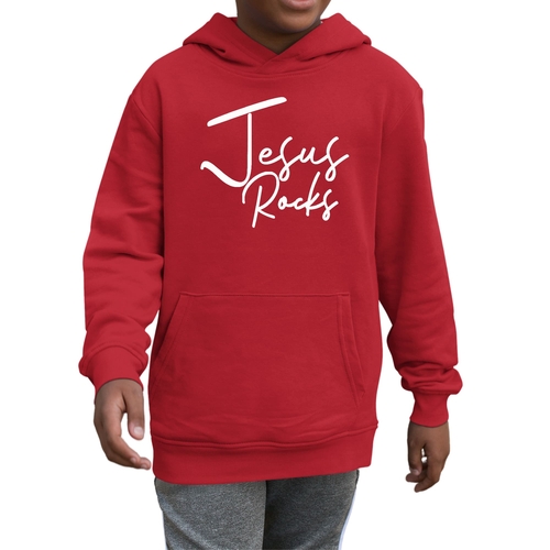 The standout feature of this hoodie is the eye-catching Jesus Rocks graphic. This design not only adds a stylish touch but also serves as a reminder of faith and positivity. It's perfect for boys who want to showcase their beliefs while looking trendy. The hoodie is available in a wide range of sizes, ensuring that every boy can find the perfect fit.
