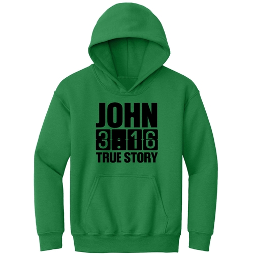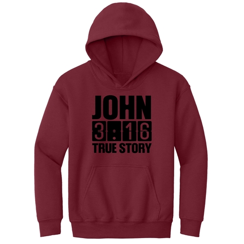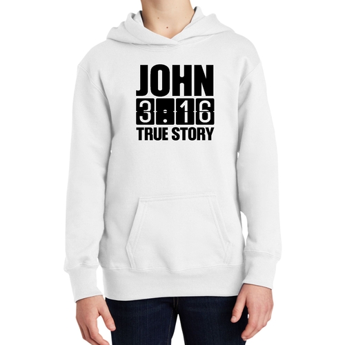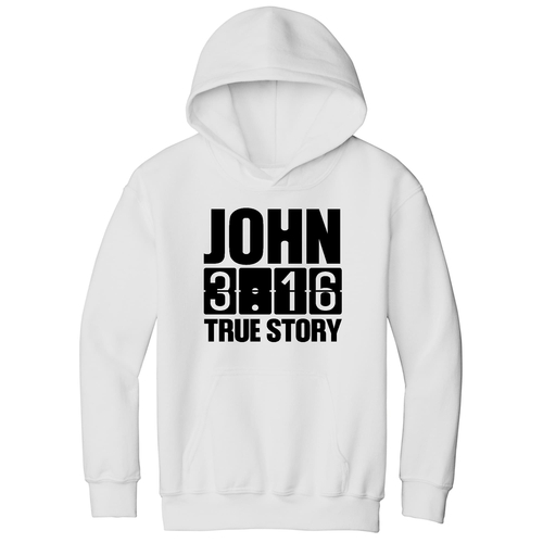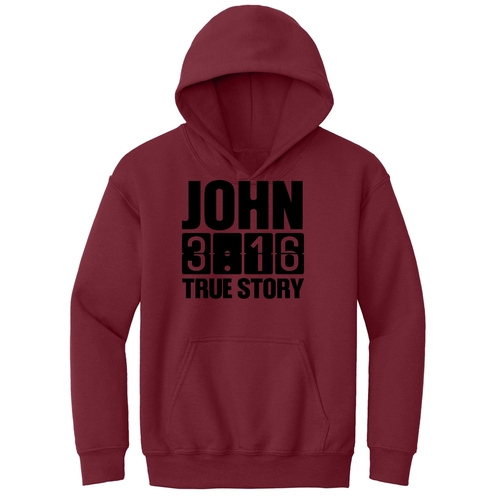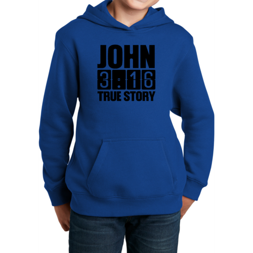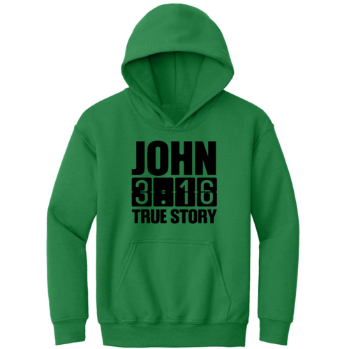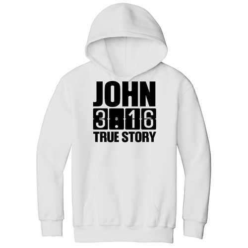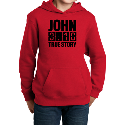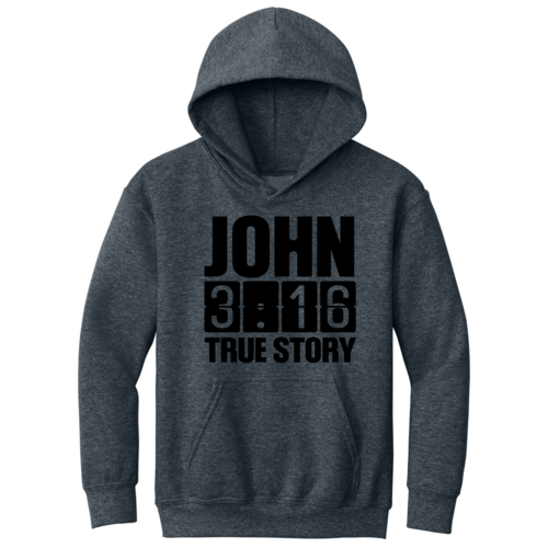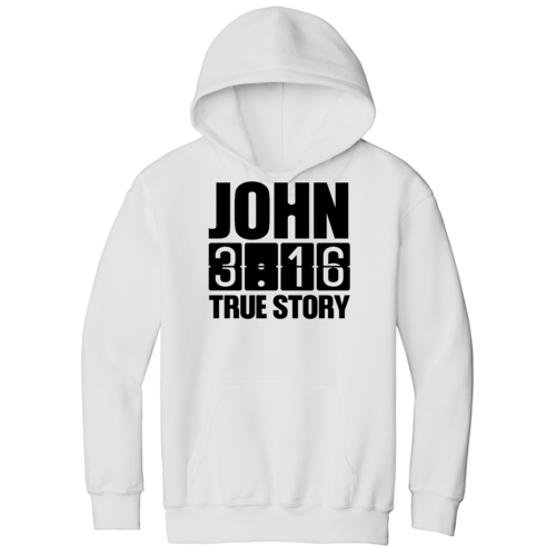 In summary, the Youth Long Sleeve Hoodie with the John 3:16 True Story print is more than just a piece of clothing; it’s a statement of faith, comfort, and style. With its durable construction, comfortable fit, and inspiring design, it’s a must-have for any young person looking to express their beliefs through their wardrobe.