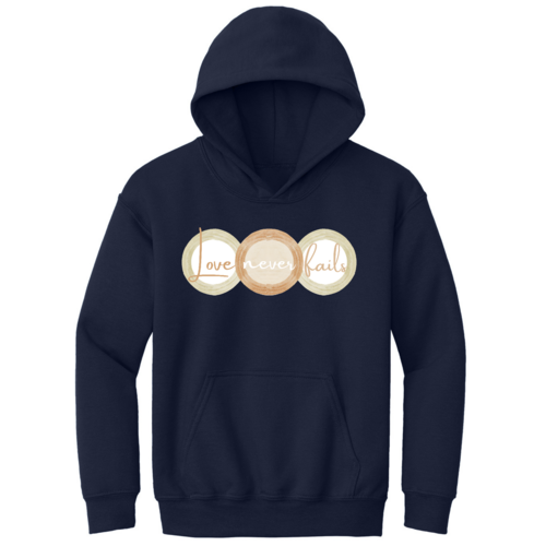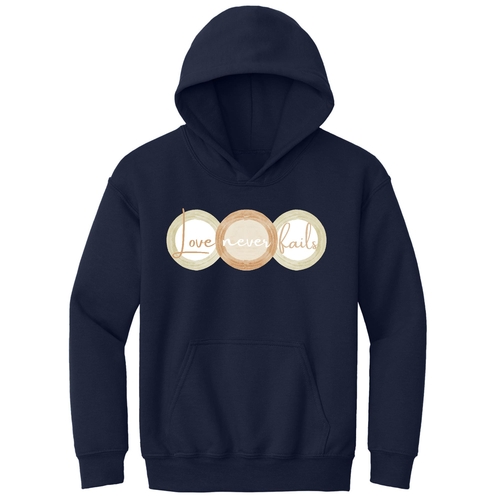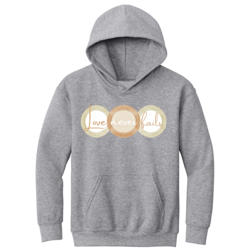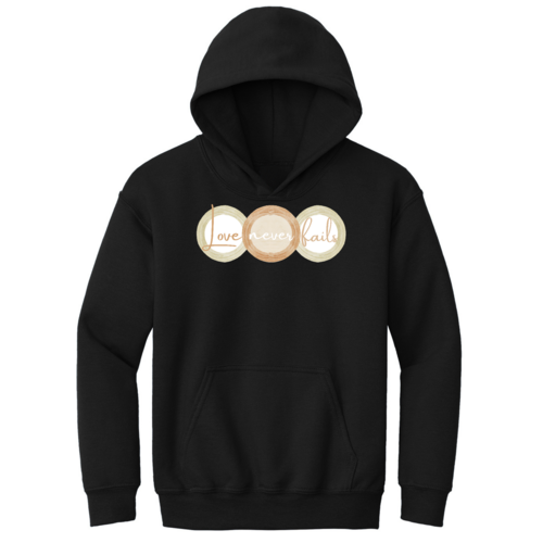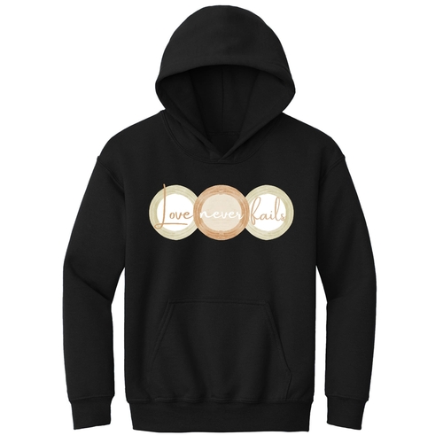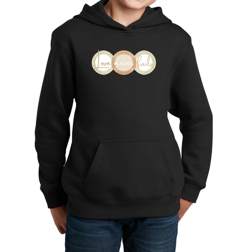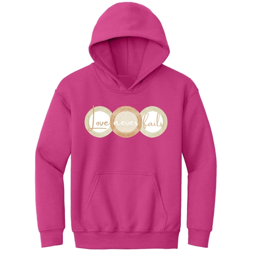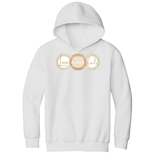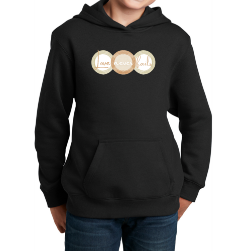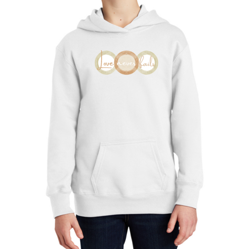 In summary, the Youth Long Sleeve Hoodie 'Love Never Fails' is a must-have for any young fashionista. With its stylish design, comfortable fit, and durable construction, it is perfect for everyday wear. Don't miss out on adding this versatile piece to your collection!
