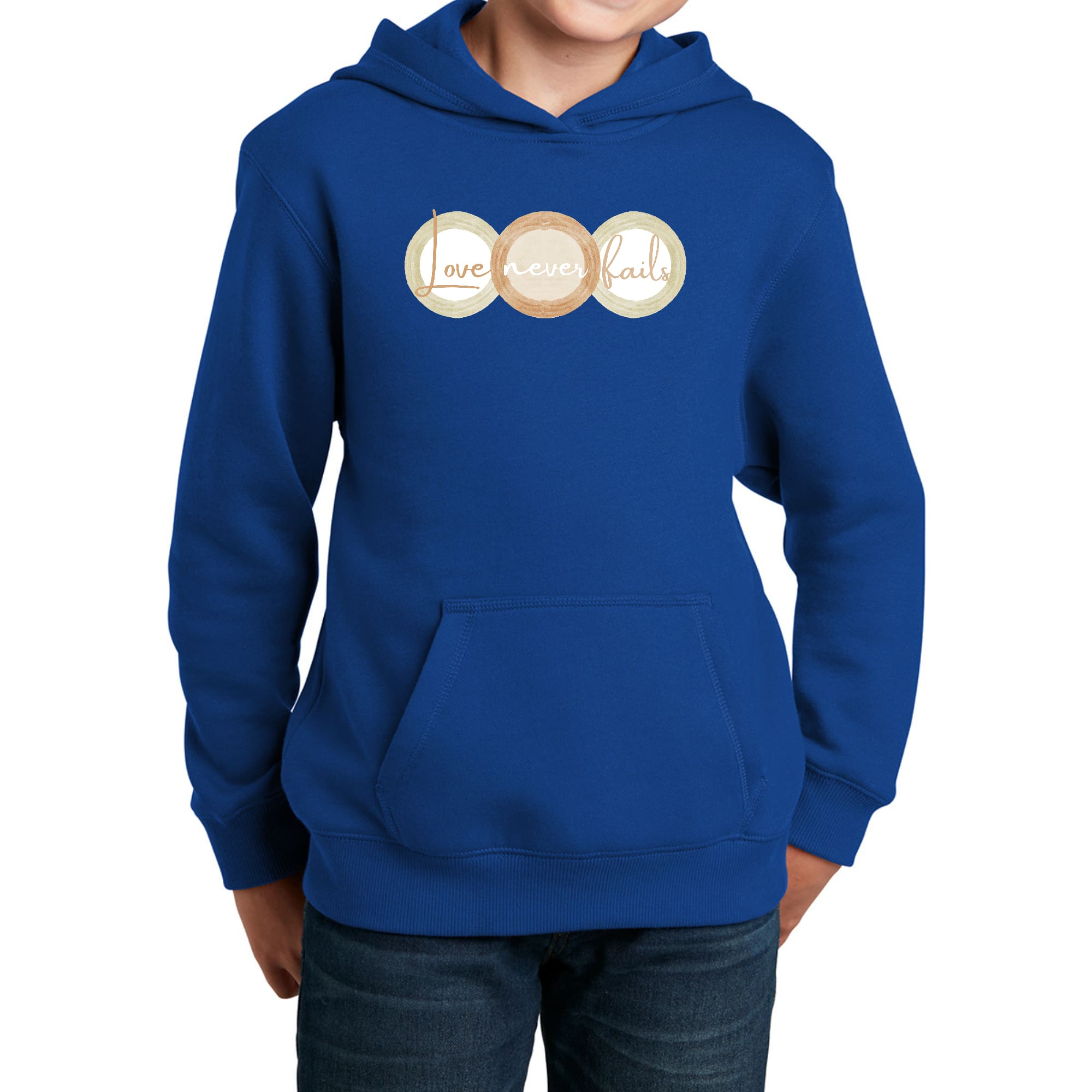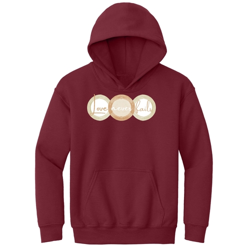 The 'Love Never Fails' hoodie comes in a wide range of sizes, ensuring that every youth can find their perfect fit. This inclusivity makes it a great gift option for birthdays, holidays, or just because. Parents can feel confident in their purchase, knowing that this hoodie will be a beloved item in their child's wardrobe.