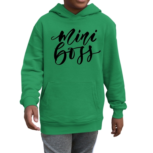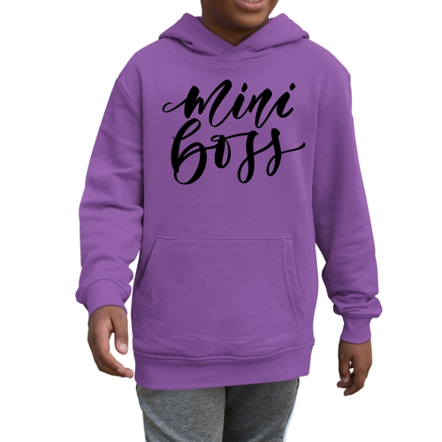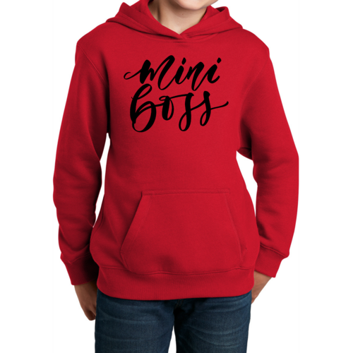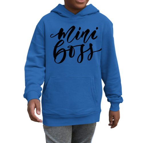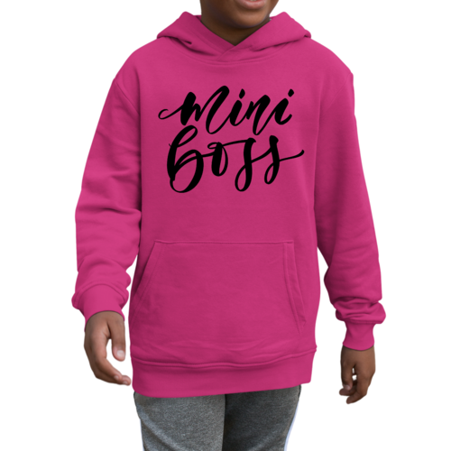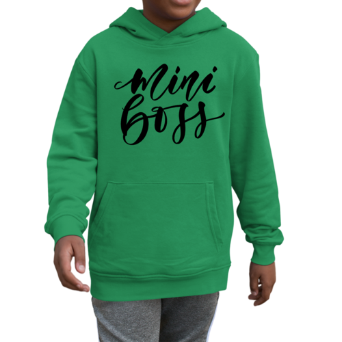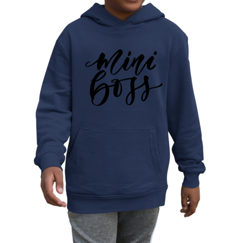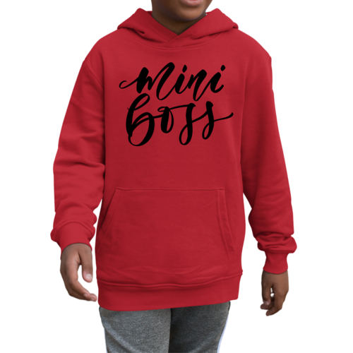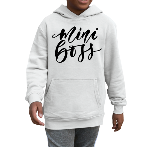 The Youth Long Sleeve Hoodie Mini Boss in black is the ultimate choice for boys who value both style and comfort. This graphic hoodie is designed to be as close to perfect as possible, making it a must-have addition to any young boy's wardrobe. Crafted from a high-quality blend of 50% cotton and 50% polyester, this hoodie offers a soft touch against the skin while ensuring durability for everyday wear.