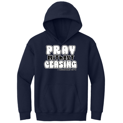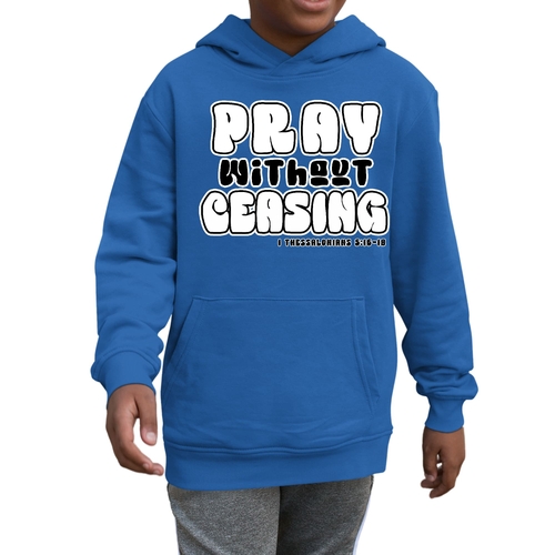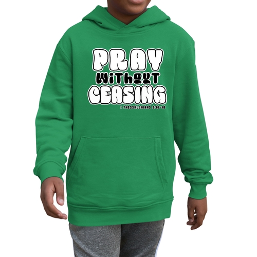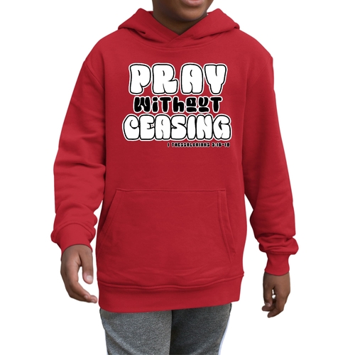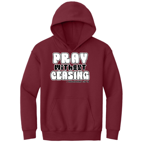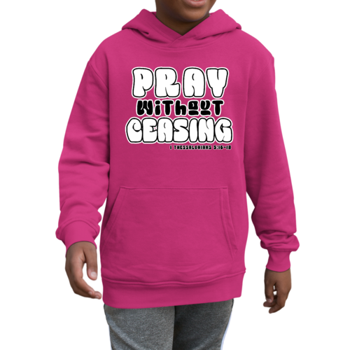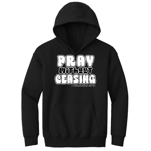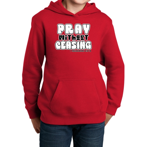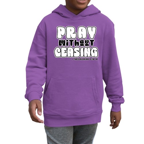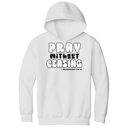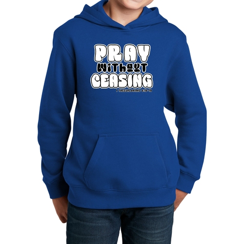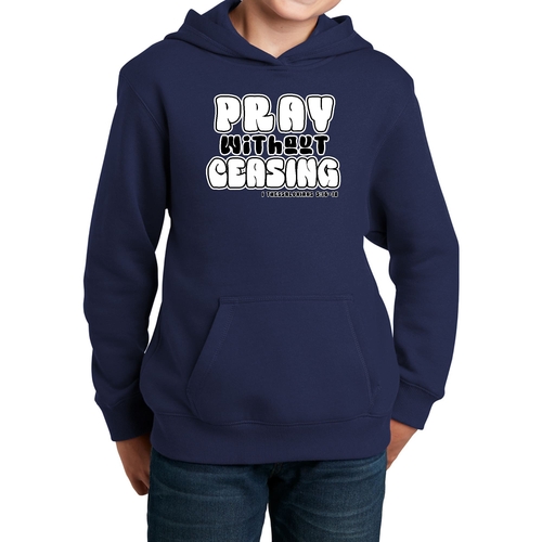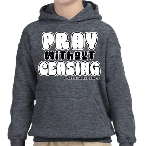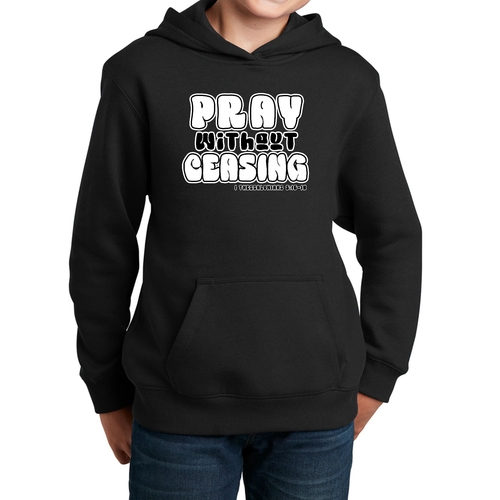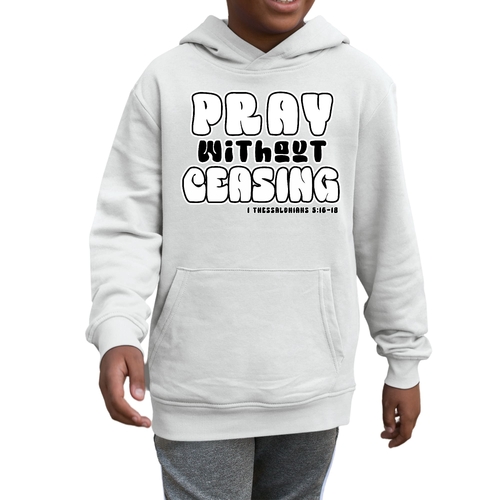 Introducing the Youth Long Sleeve Hoodie featuring the inspirational message 'Pray Without Ceasing'. This hoodie is designed for boys who appreciate both style and comfort. Made from a high-quality blend of 50% cotton and 50% polyester, it offers a soft touch against the skin while ensuring durability for everyday wear. Whether your child is lounging at home, heading to school, or participating in outdoor activities, this hoodie is a versatile addition to their wardrobe.