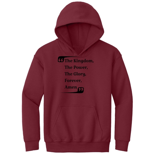 In summary, the Youth Long Sleeve Hoodie featuring 'The Kingdom, The Power, The Glory Forever Amen' is a must-have for any young individual looking to combine comfort, style, and a meaningful message. With its durable construction, easy care instructions, and wide range of sizes, this hoodie is sure to become a favorite in any wardrobe.