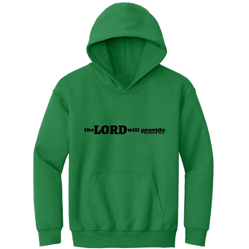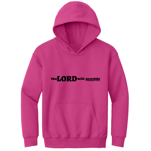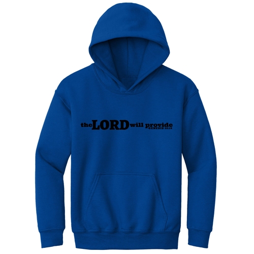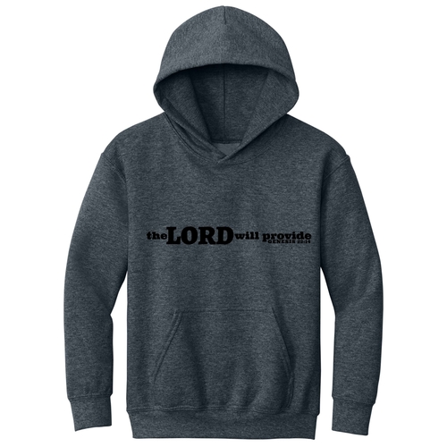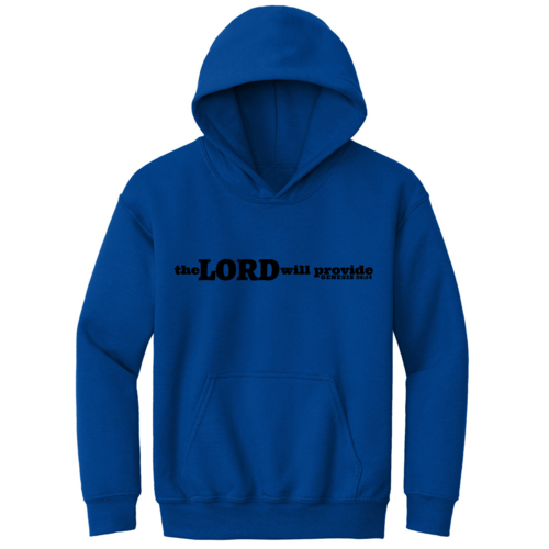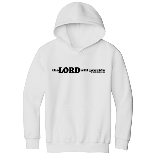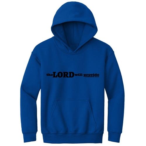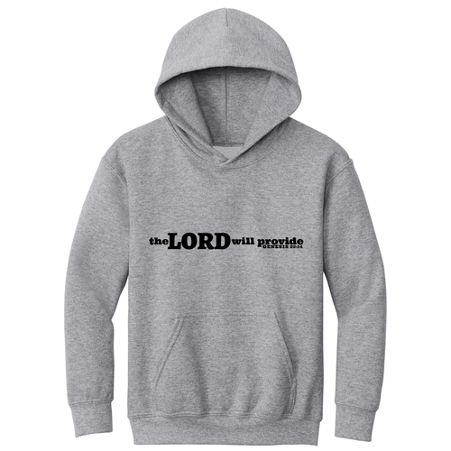 Introducing the Youth Long Sleeve Hoodie featuring the inspiring print 'The Lord Will Provide' from Genesis 22:14. This black youth graphic hoodie is designed not only for style but also for comfort and durability. Made from a high-quality blend of 50% cotton and 50% polyester, this hoodie is perfect for everyday wear, whether your child is lounging at home, heading to school, or participating in outdoor activities.