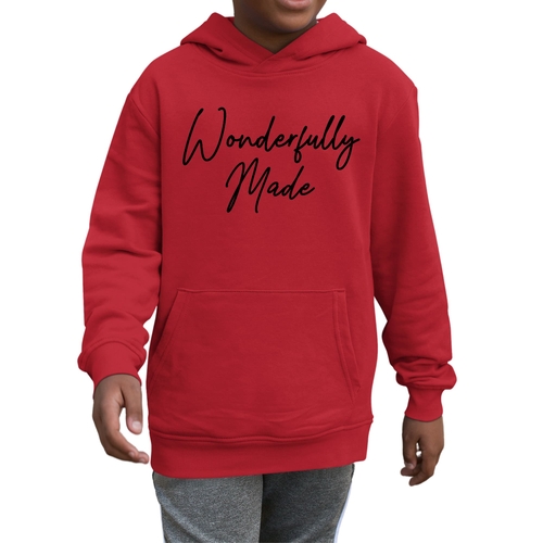 The Youth Long Sleeve Hoodie Wonderfully Made Black Illustration is the perfect addition to any young boy's wardrobe. This hoodie combines style, comfort, and durability, making it an essential piece for everyday wear. Crafted from a high-quality blend of 50% cotton and 50% polyester, this hoodie is designed to provide a soft and cozy feel against the skin, ensuring that your child stays comfortable throughout the day.