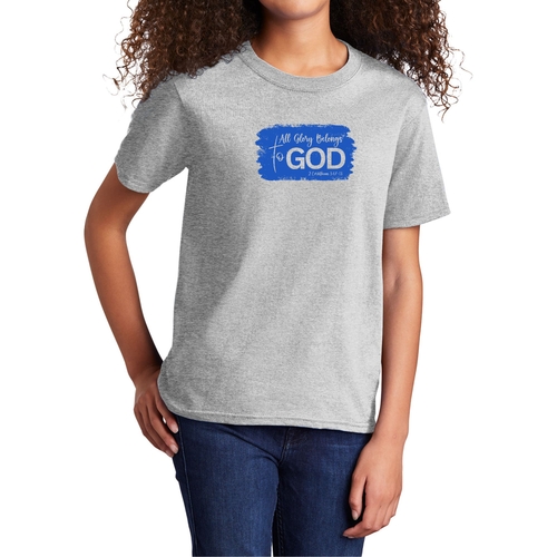 Introducing our Youth Short Sleeve Graphic T-shirt, designed with the inspiring message 'All Glory Belongs to God.' This T-shirt is perfect for young believers who want to express their faith in a stylish and comfortable way. Made from high-quality preshrunk cotton, this shirt retains its softness and size even after multiple washes, ensuring that it remains a favorite in your child's wardrobe.