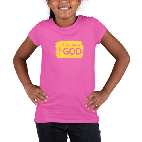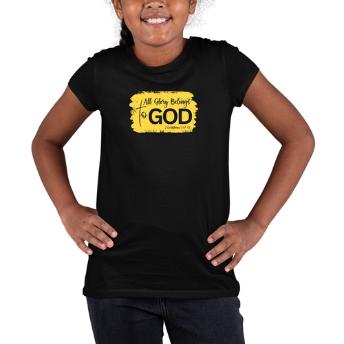 Introducing the Youth Short Sleeve Graphic T-shirt, a perfect blend of comfort and style for young believers. This T-shirt features the inspiring message 'All Glory Belongs to God' illustrated in a vibrant yellow design, making it a wonderful addition to any Christian youth's wardrobe. Crafted from soft, preshrunk cotton, this shirt ensures that it retains its softness and size even after multiple washes, providing lasting comfort and wearability.