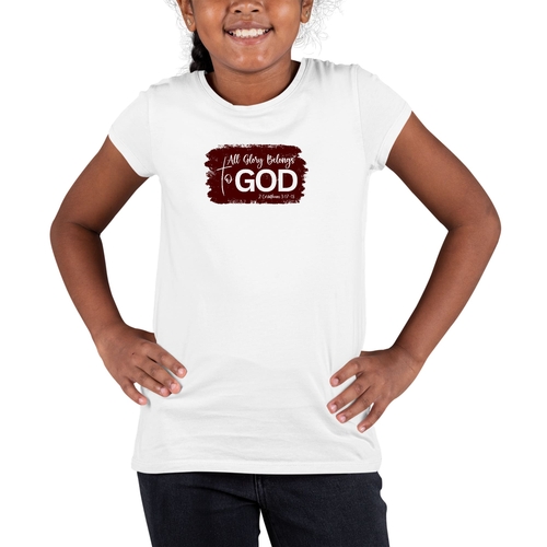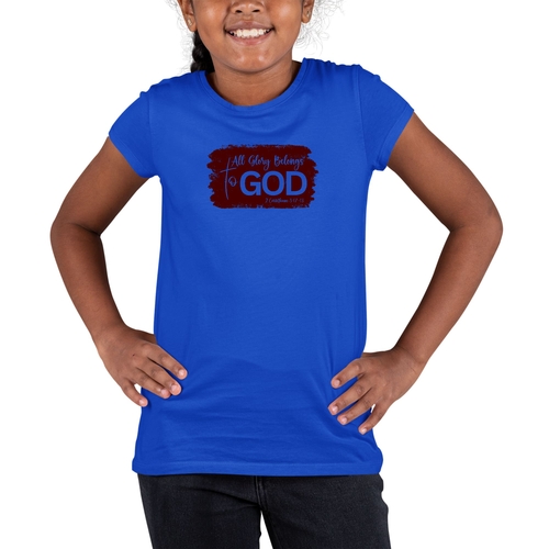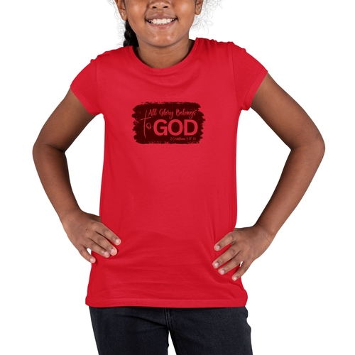 Introducing our Youth Short Sleeve Graphic T-shirt, a perfect blend of style and comfort for young believers. This t-shirt features the inspiring message 'All Glory Belongs to God' in a beautiful maroon color, making it a great addition to any wardrobe. Crafted from soft, preshrunk cotton, this tee ensures that it retains its softness and size even after multiple washes, providing lasting comfort for everyday wear.