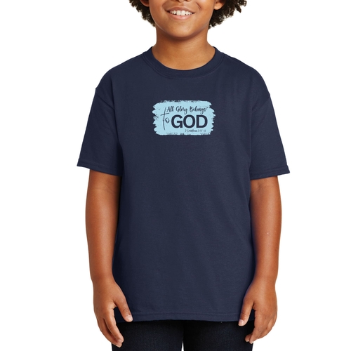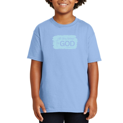 Introducing our Youth Short Sleeve Graphic T-shirt, designed with a beautiful Christian illustration that reads 'All Glory Belongs to God'. This light blue T-shirt is not only stylish but also incredibly comfortable, making it an ideal choice for everyday wear. Crafted from soft, preshrunk cotton, this shirt ensures that it retains its softness and size even after multiple washes, providing lasting comfort for your child.