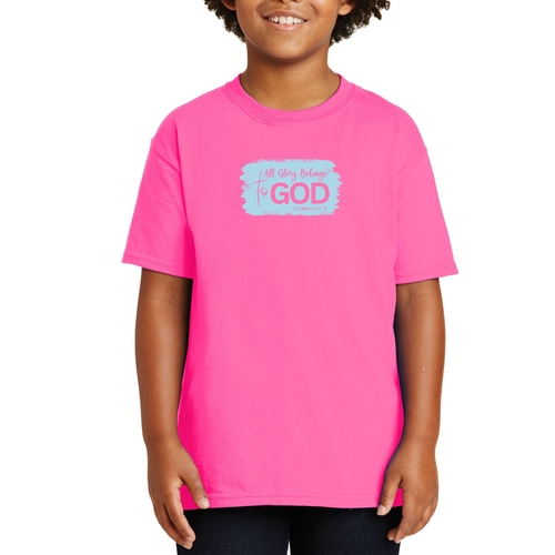 In summary, our Youth Short Sleeve Graphic T-shirt featuring 'All Glory Belongs to God' is a must-have for any young believer. With its comfortable fit, high-quality materials, and meaningful design, it is sure to become a favorite in their wardrobe. Shop now and let your child express their faith in style!