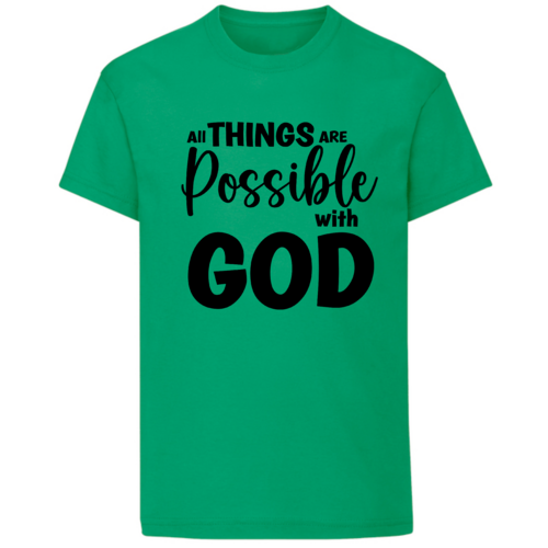 This graphic t-shirt is not just a piece of clothing; it's a statement of faith and positivity. The message 'All Things are Possible with God' serves as a daily reminder of hope and encouragement for young wearers. It's perfect for casual outings, church events, or simply lounging at home. Pair it with jeans, shorts, or skirts for a stylish look that expresses individuality and belief.