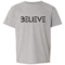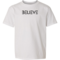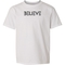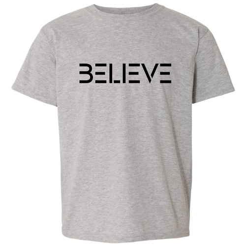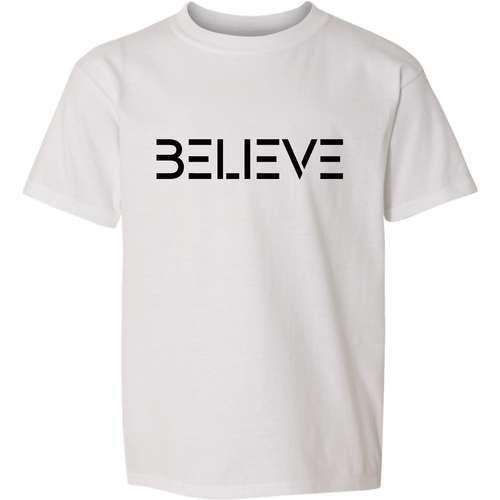 Introducing the Believe Black Print Youth Short Sleeve Graphic T-shirt, a perfect blend of comfort and inspiration for young individuals. This stylish graphic tee is designed to motivate and uplift, making it an ideal choice for both boys and girls. Crafted from high-quality preshrunk cotton, this t-shirt ensures that it retains its softness and size even after multiple washes, providing lasting wear and comfort.