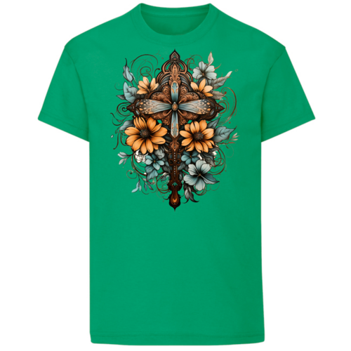 The standout feature of this T-shirt is the vibrant Christian Cross Floral Bouquet illustration. This unique design not only adds a pop of color but also conveys a meaningful message, making it a thoughtful gift for any occasion. The floral elements combined with the cross create a beautiful aesthetic that appeals to both children and parents alike.