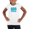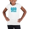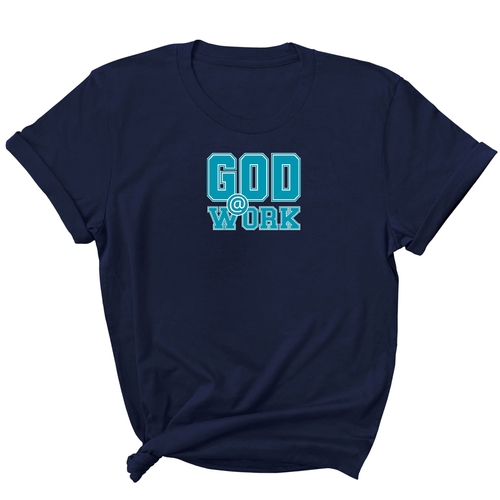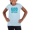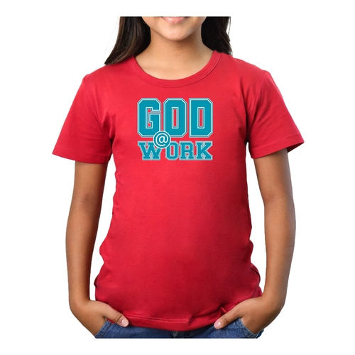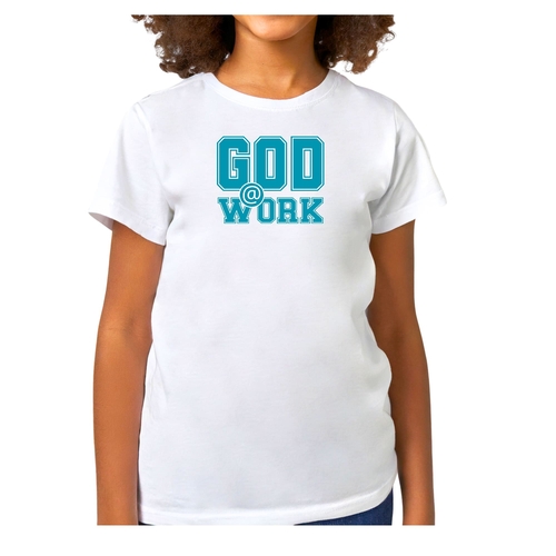 Overall, the God @ Work Blue Green and White T-shirt is an excellent addition to any young girl's wardrobe. With its combination of comfort, durability, and inspirational design, it’s sure to become a favorite piece that she will reach for time and time again.