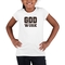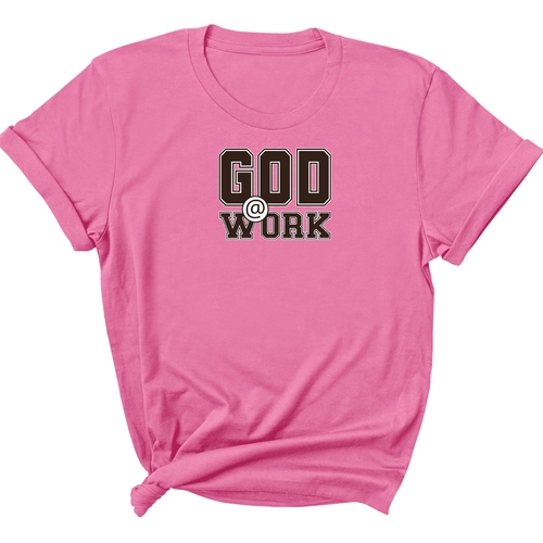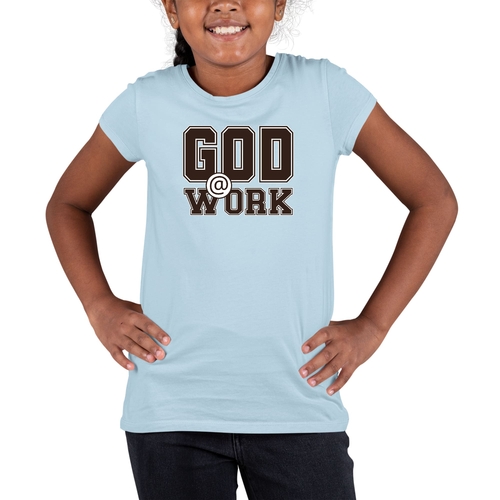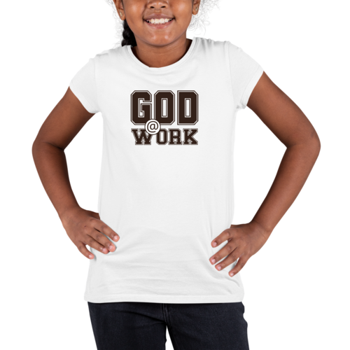 The God @ Work graphic design is not only trendy but also carries a positive message, making it a great choice for young girls who want to express their faith and values through their clothing. This T-shirt can be paired with jeans, shorts, or skirts, making it a versatile piece that can be dressed up or down depending on the occasion.