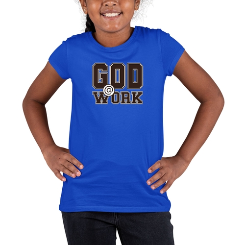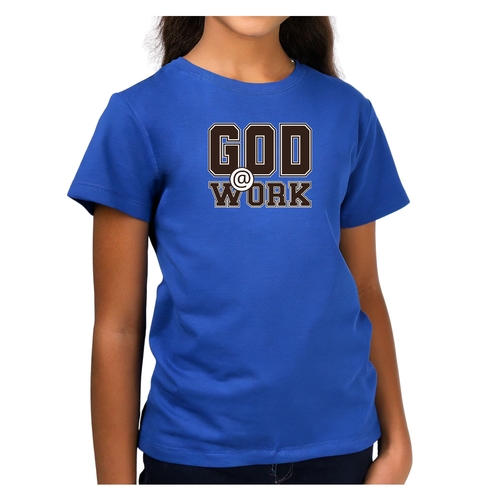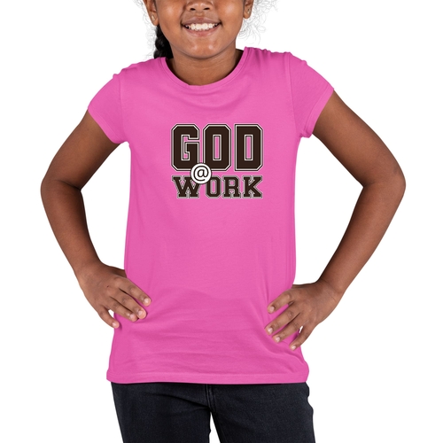 Whether for a casual day out, a family gathering, or simply lounging at home, the Youth Short Sleeve Graphic T-shirt with the God @ Work print is an excellent choice. It combines comfort, style, and a meaningful message, making it a must-have for any young girl's wardrobe.