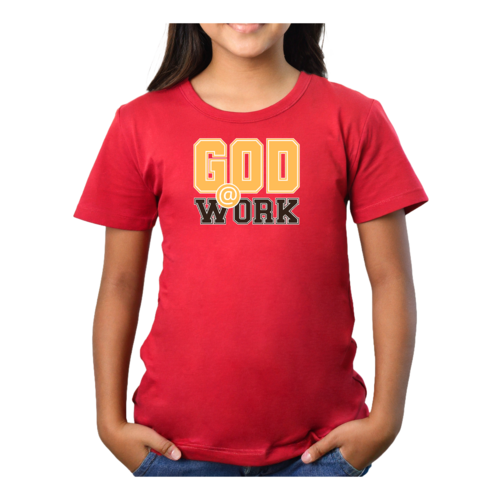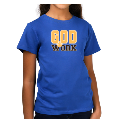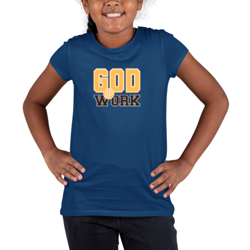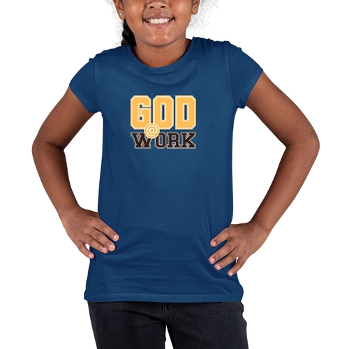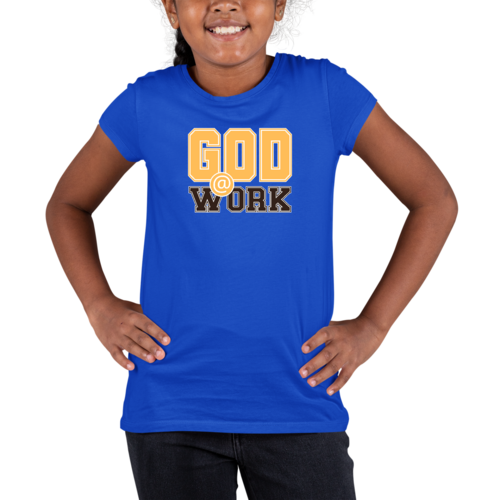 In summary, the Youth Short Sleeve Graphic T-shirt with the 'God @ Work' print is a must-have for any young girl who values comfort, style, and a positive message. With its soft preshrunk cotton fabric, classic fit, and durable design, this T-shirt is perfect for everyday wear. Whether paired with jeans, shorts, or skirts, it is sure to become a favorite in your child's wardrobe.