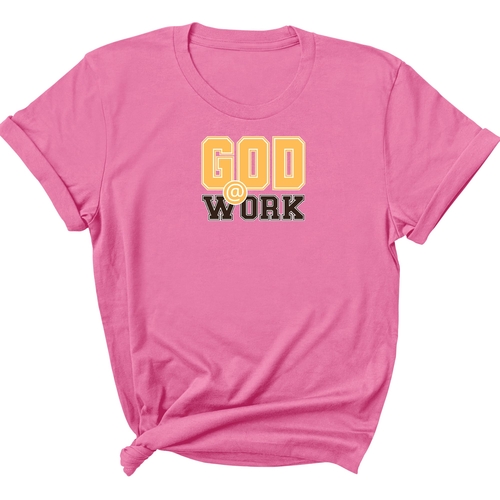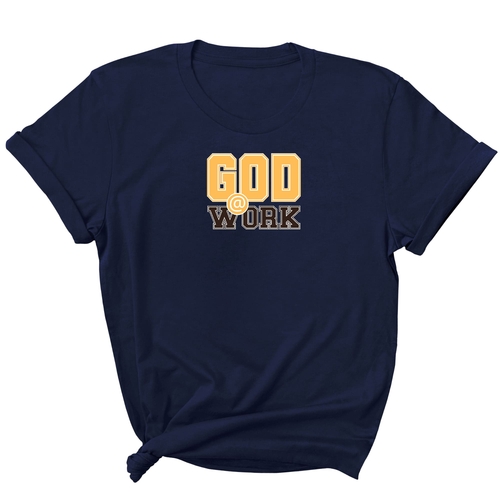 To keep your God @ Work T-shirt looking its best, follow these simple care instructions: wash in cool water, hang dry or tumble dry on low heat, and avoid dry cleaning. The preshrunk cotton fabric may vary slightly in content for some colors, but overall, it is designed to be easy to care for and maintain.