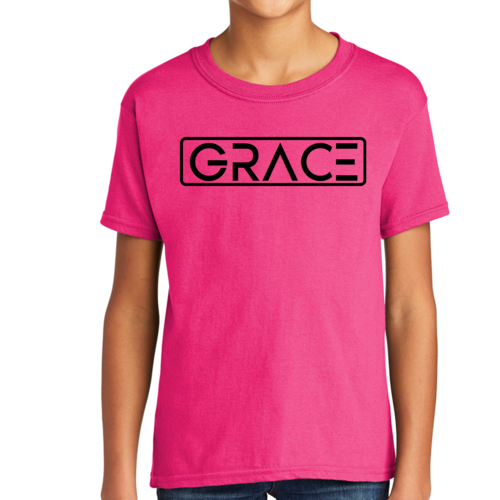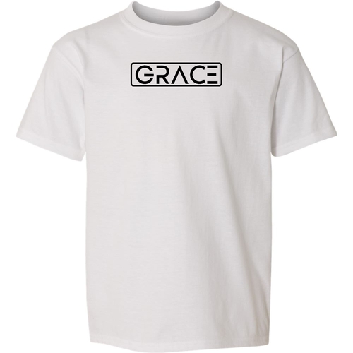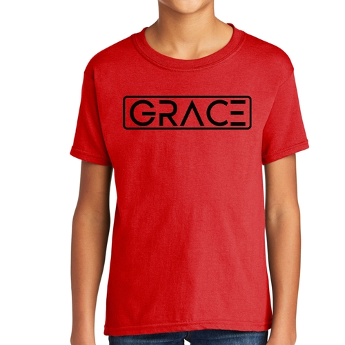 The Youth Short Sleeve Graphic T-shirt featuring a Grace Christian black illustration is the perfect addition to any young person's wardrobe. This t-shirt combines style, comfort, and durability, making it an essential piece for everyday wear. Crafted from high-quality cotton material, this tee is designed to provide a soft touch against the skin, ensuring that your child feels comfortable all day long.