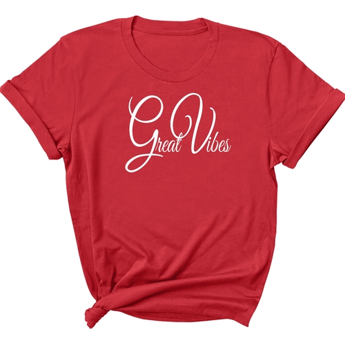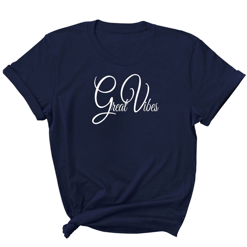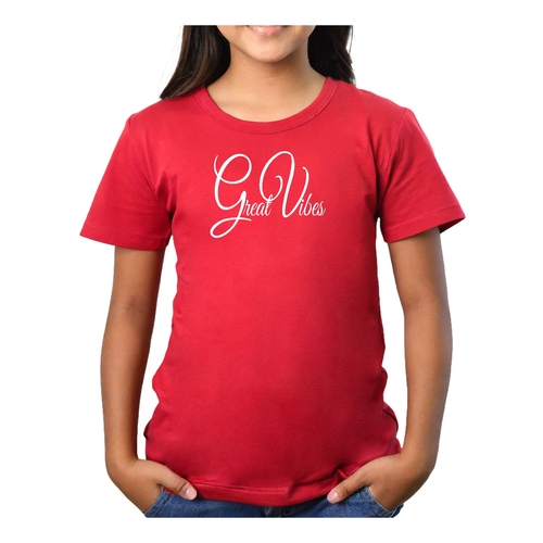 The vibrant graphic design on the front of the t-shirt showcases a fun and positive message, making it a great choice for kids who love to express themselves through their clothing. The Great Vibes theme resonates with a carefree and joyful spirit, encouraging children to embrace their individuality. This t-shirt pairs well with jeans, shorts, or skirts, making it a versatile addition to any young person's wardrobe.