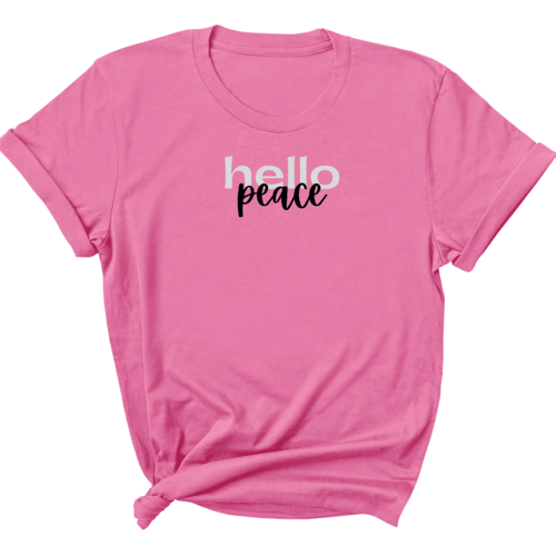 Introducing the Youth Short Sleeve Graphic T-shirt featuring the inspiring 'Hello Peace' design, a perfect blend of comfort and style for young girls. This T-shirt is crafted from soft, preshrunk cotton, ensuring that it retains its softness and size even after multiple washes. The classic fit makes it an ideal choice for everyday wear, whether for school, playdates, or casual outings.