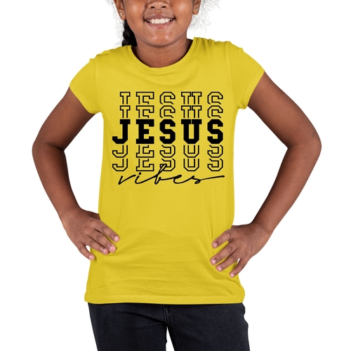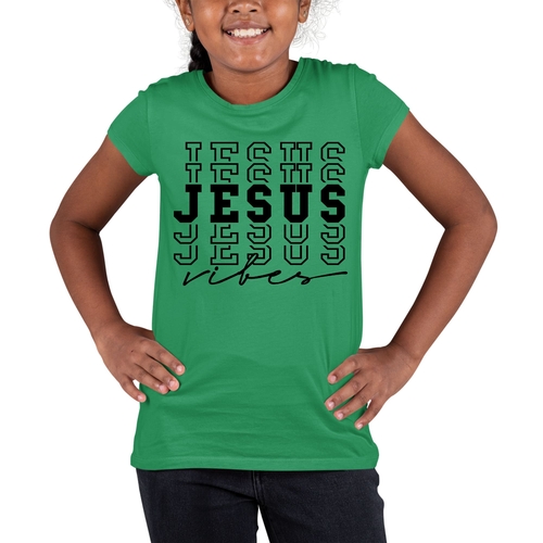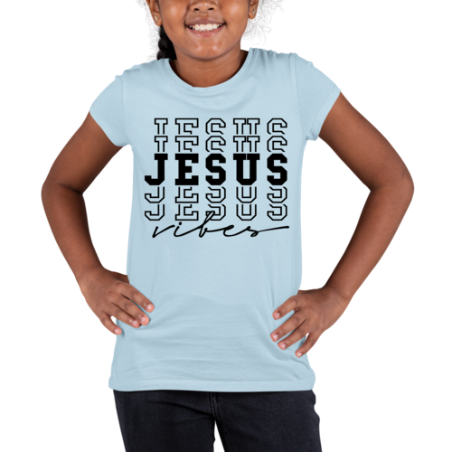 Introducing the Youth Short Sleeve Graphic T-shirt featuring the uplifting Jesus Vibes design. This T-shirt is not only stylish but also incredibly comfortable, making it a perfect addition to any young person's wardrobe. Crafted from soft, preshrunk cotton, this shirt ensures that it retains its softness and size even after multiple washes, providing long-lasting wear.