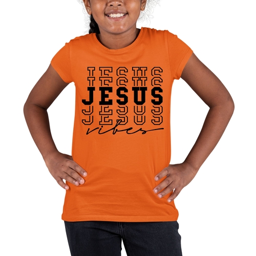The standout feature of this T-shirt is the eye-catching Jesus Vibes graphic printed in the USA. This design not only adds a trendy touch but also conveys a positive message, making it a great choice for youth who want to express their faith and style. The vibrant colors and bold design are sure to make a statement, whether worn at school, church, or during casual outings.