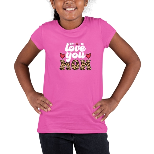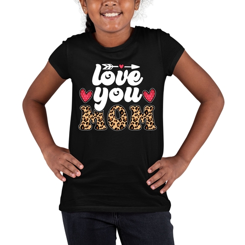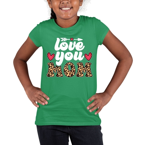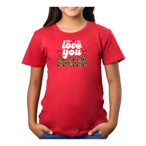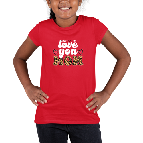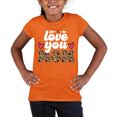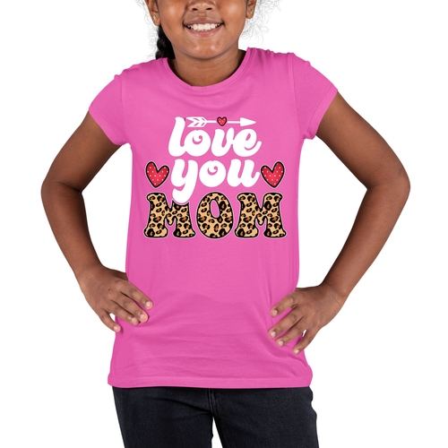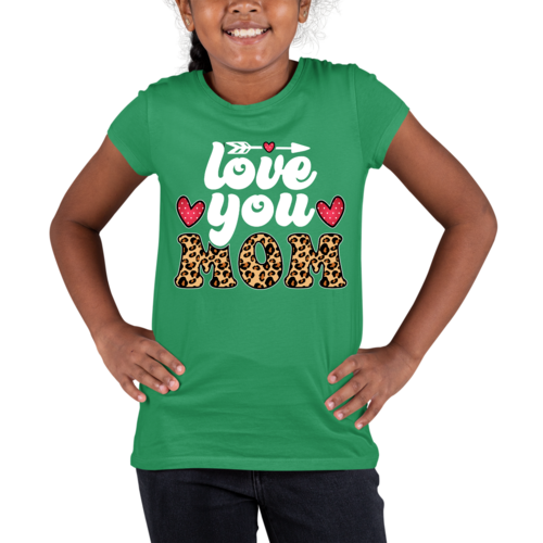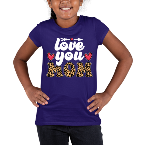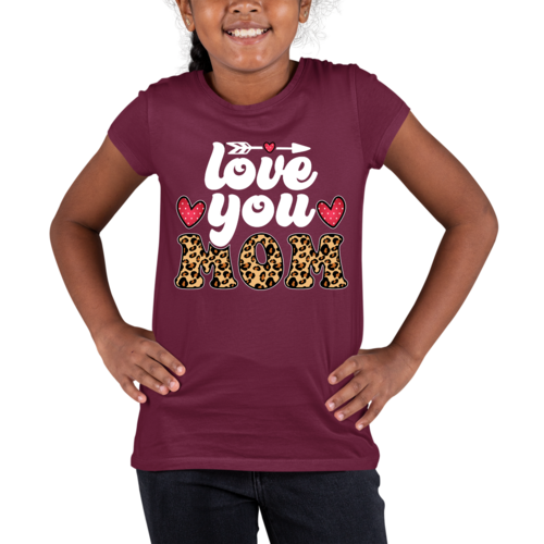 In summary, the Youth Short Sleeve Graphic T-shirt with the 'Love You Mom' leopard print is a delightful addition to any young girl's clothing collection. It combines comfort, style, and a heartfelt message, making it the perfect choice for celebrating the special bond between mothers and daughters.