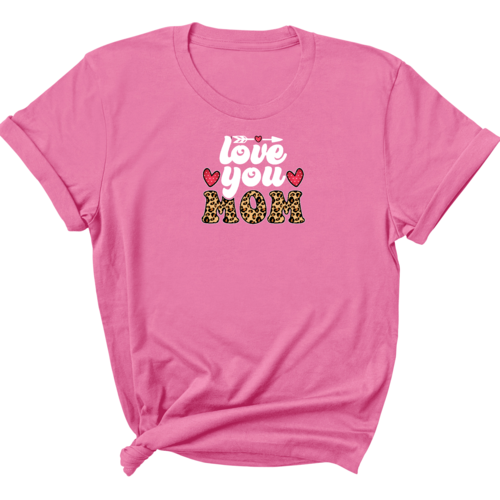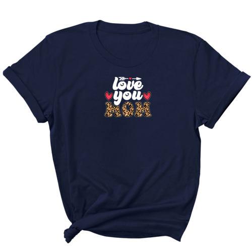 This T-shirt features a stylish crewneck and rib collar, providing a comfortable fit around the neck. The tubular body design ensures a flattering silhouette, while neck and shoulder taping adds stability and stretch resistance. The eye-catching leopard print design, combined with the heartfelt message 'Love You Mom,' makes this shirt a perfect gift for Mother's Day or any day when you want to show appreciation for mom.